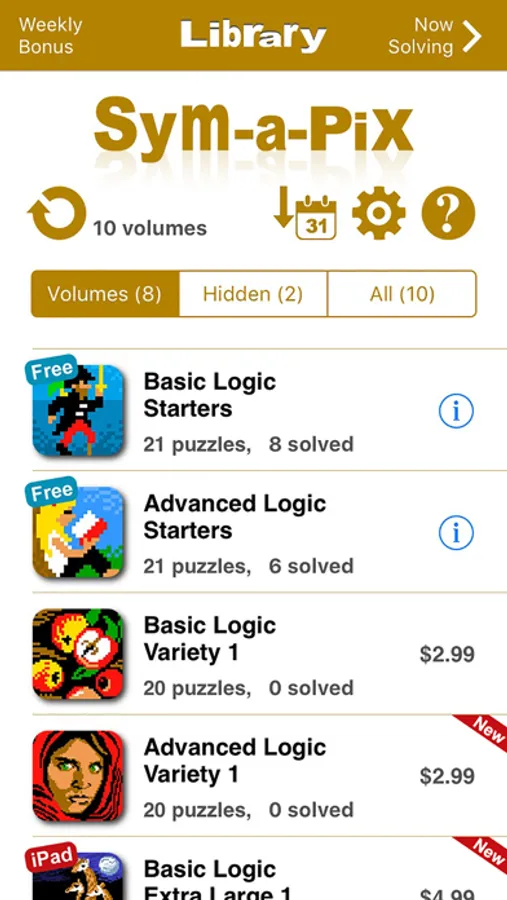 For more fun, Conceptis Sym-a-Pix includes a Weekly Bonus section providing an extra free puzzle each week.