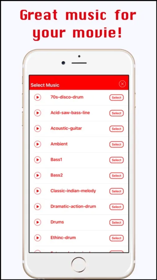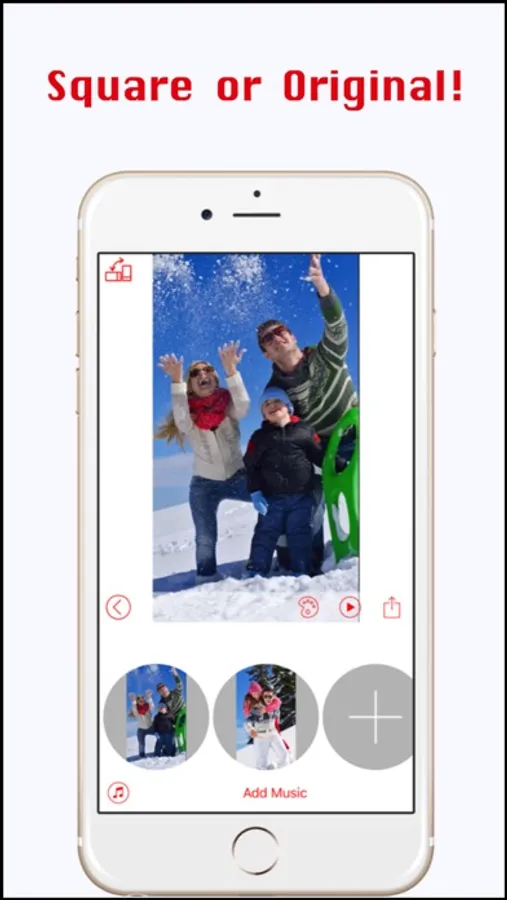 ==> Select music tracks provided by the App, or your own or keep the original audio.