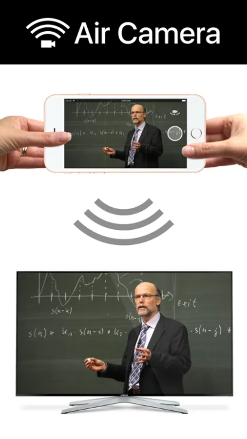 Air Camera is the best way to stream your camera to an airplay receiver. eg. Apple TV, AirParrot or AirServer. Perfect for live events when you need a simple video feed to an external display. The external display only shows the video so elements like notifications, battery status and time don't distract your audience.