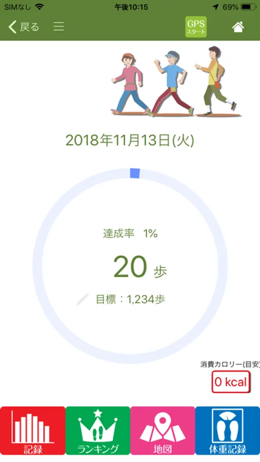 携帯端末を持ってウォーキングを行うことで、歩数をカウントできます。