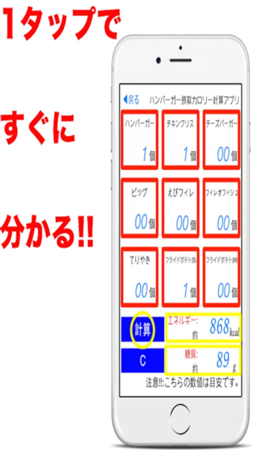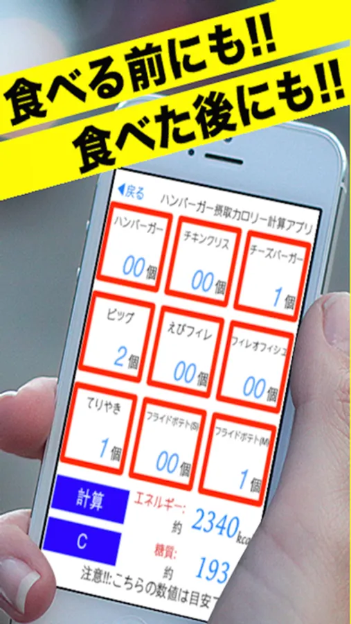 ハンバーガーやフライドポテトを食べた時のカロリーと糖質を算出する
