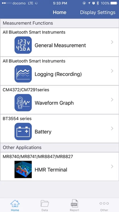 - General Measurement : This function is useful when you would like to get the multiple data. You can connect multiple measurement instruments and save the data manually. The app's maximum number of instruments connection is 8, however some devices only allow to connect fewer measuring instruments simultaneously depending on their wireless connectivity. In addition, location information and photos can be saved with measured data.