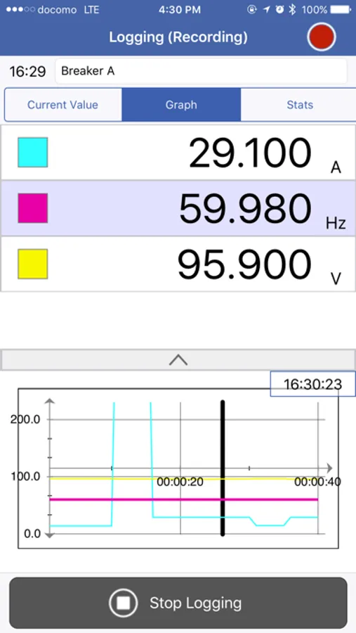 - Event Recording: This is a function that allows you to easily visualize when and how much measuring values exceeded the pre-set thresholds on your smartphone and tablet. This is ideal for troubleshooting of over load and leakage current and voltage drop, for example.
