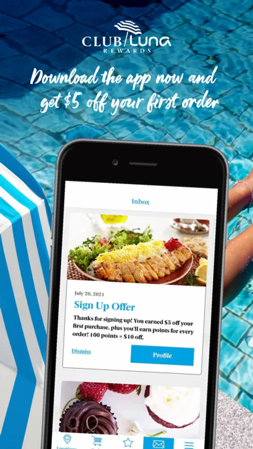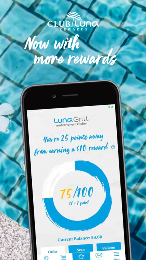 Download the Club Luna Rewards app and start earning $10 for every $100 spent. Use the app for simple and convenient ordering for delivery, curbside or in-restaurant pickup. Find a location near you and receive special offers. Enjoy the delicious flavors of the Mediterranean, like signature kabob plates, gourmet salads, appetizers including hummus and falafel, wraps, bowls, desserts, craft beer and wine — just add sea, sun and salt air. It’s nostimo!