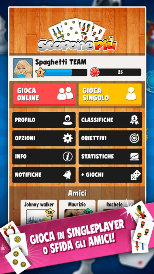Visit www.spaghetti-interactive.it and find all our other fun classic Italian and international card games: scopa, briscola, burraco, scopone, tressette, rubamazzo, assopiglia and scala40. You will also find board games like checkers and chess!