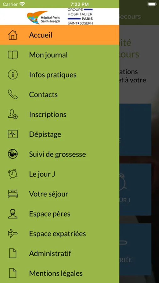 Cette application est destinée aux femmes enceintes dont le suivi prénatal sera assuré à la maternité Paris Saint Joseph ou dans le réseau de proximité de notre maternité. Cette application permet de compléter les informations médicales et pratiques qui vous seront apportées par les cliniciens sur le déroulement de votre grossesse, l’organisation de votre suivi prénatal, les cours de préparation à la naissance, votre accouchement, votre séjour à la maternité, votre retour à domicile et tous les " petits plus" de Saint Joseph.