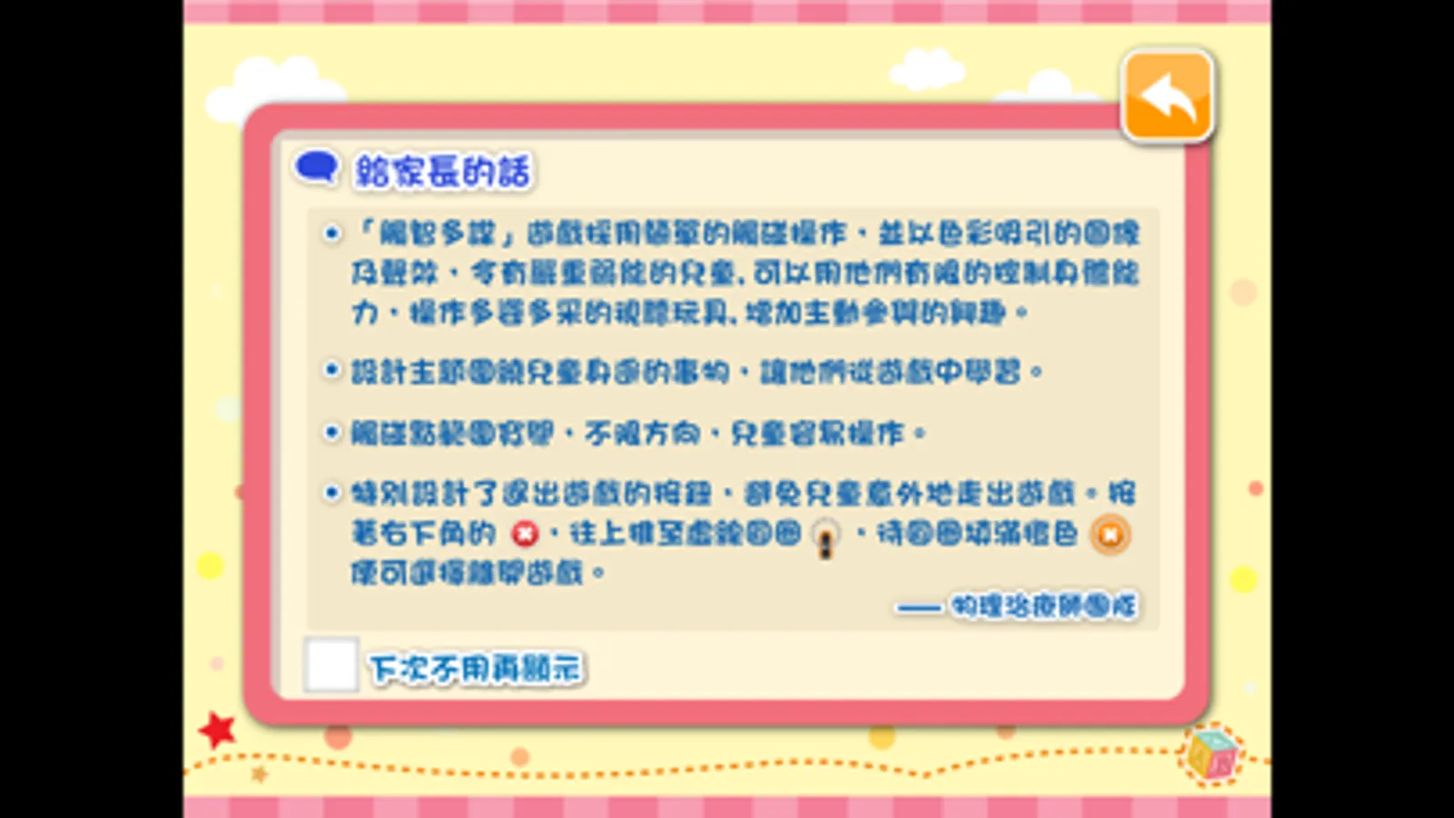 「觸智多謀」遊戲特別為此類兒童而設計,它有多項的特點,包括觸碰點範圍寬闊,不限方向, 兒童只需輕踫螢光幕便能獲得有趣和合宜的聽覺和視覺的回饋,大大增加兒童主動參與的興趣,誘發他們重複地自主控制肢體;除此之外,它加入了嚴重弱能兒童學習和訓練的元素,範圍包括感官反應、基礎認知、社交互動和情緒氣質; 同時,主題圍繞兒童身邊的事物,使兒童可以連合肢體動作和其他範疇的學習, 一舉兩得。