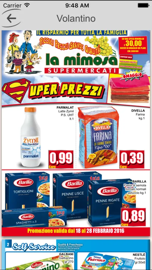 Con la nostra applicazione sarai sempre aggiornato sul volantino e sulle offerte giornaliere e in più potrai ricevere vantaggiosi coupons da utilizzare nel nostro supermercato!
