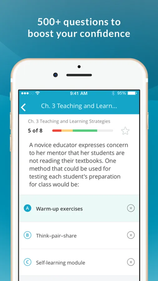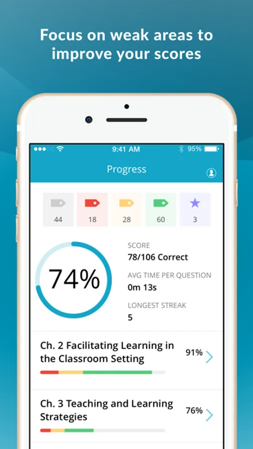 • Detailed results tracking for practice questions, with the ability to flag your weak areas for further review
