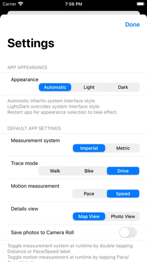 - Trace distinguishes between true trace paths vs. extrapolated paths from poor GPS signal conditions.