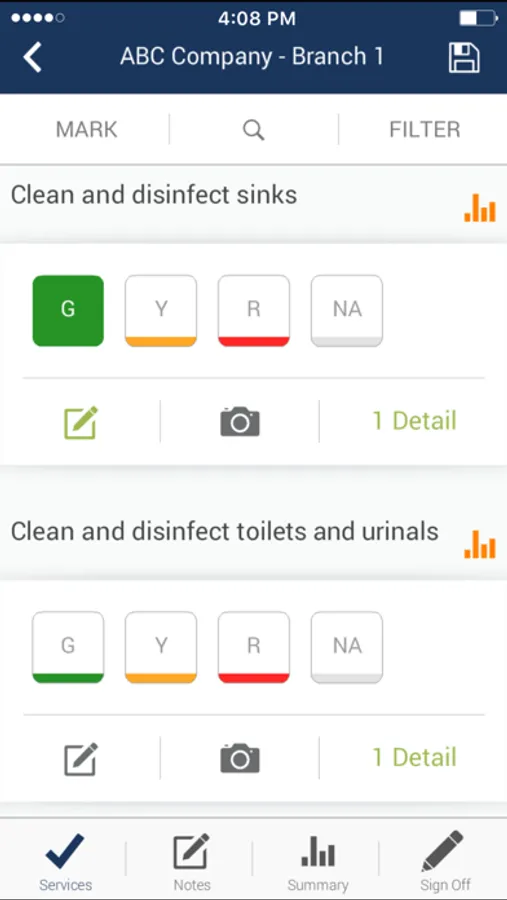The RNA Quality app provides the flexibility to perform cleaning inspections from anywhere, even without an internet connection. Once the app is downloaded onto your device, inspections are performed with a few simple clicks. Easily send and receive before and after photos of client sites. The data is then uploaded and stored to an online database. Inspection scores are emailed immediately to any pre-selected individuals. You can also view reports from the device, or clients can login to the online database to run the same inspection reports.