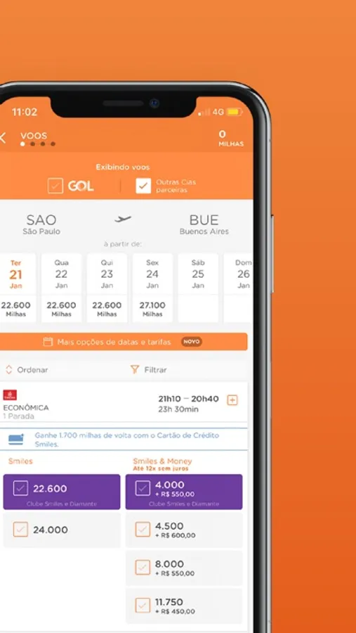 Pesquise voos da GOL ou das mais de 50 companhias aéreas parceiras e reserve sua passagem utilizando milhas. Garanta os melhores preços em passagens baratas no app. São diversos destinos nacionais e internacionais incríveis esperando por você!