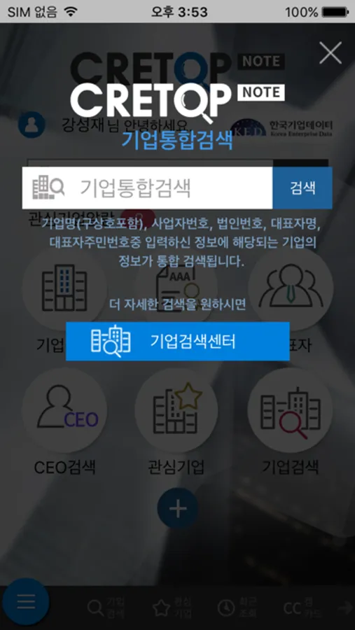 - 크레탑 노트 앱 이용을 위해서는 기존의 한국기업데이터가 운영하는 CRETOP, EW 회원이거나 신규가입 회원에 대해서 서비스가 가능합니다
