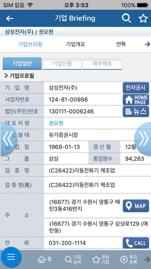 - 기업정보 : 기업브리핑, 개황정보, 주주현황, 사업현황, 영업현황, 재무제표 등 제공