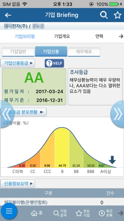 - 기업신용정보 : 신용등급, 현금흐름등급, 소송정보, 행정처분정보, 휴폐업정보 제공
