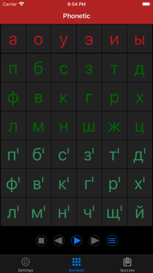 • Include 42 standard phonetic symbols of Russian and 33 letters of Russian.