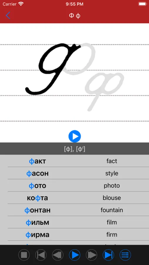 The App can help you learning and mastering the pronunciation and handwriting of Russian.