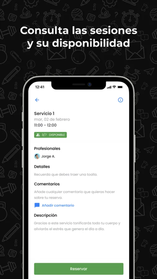 · Consulta las sesiones que ofrece el centro, así como su disponibilidad.