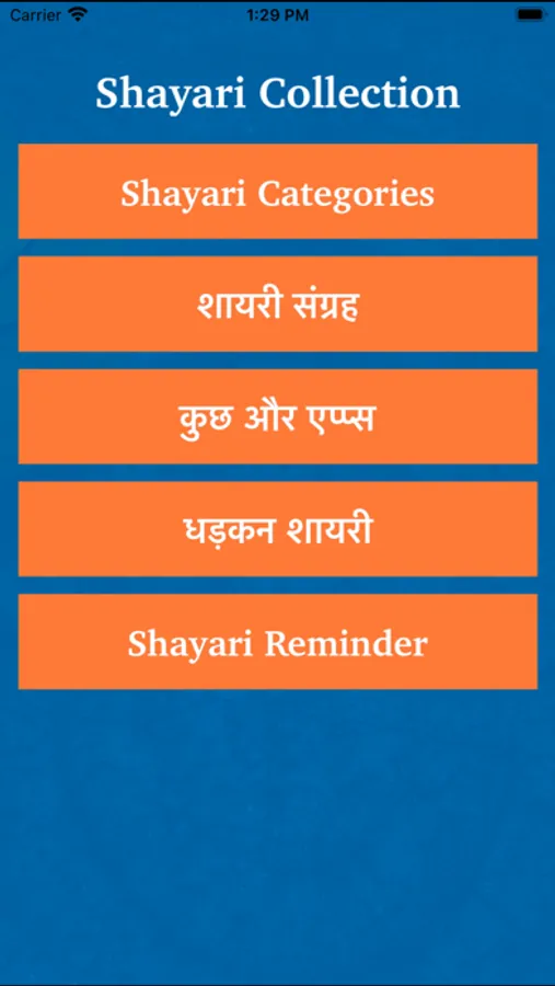 This app contain Largest Collection of Shayari in Both Hindi and English.