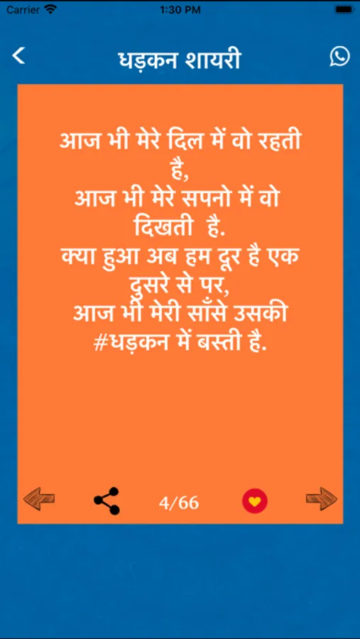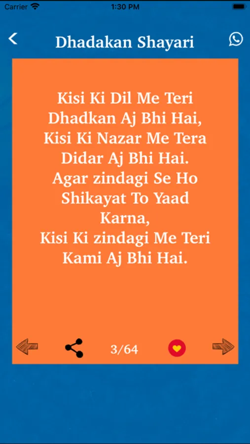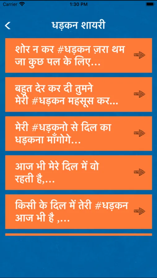 Dhadkan Shayari is unique poetic way to express yourself your feelings deep in heart. This app is the right place for Specially Ishq Shayari on every Best in class categories like Dard bhari shayari, break up Shayari , Sad Shayari , bewafai