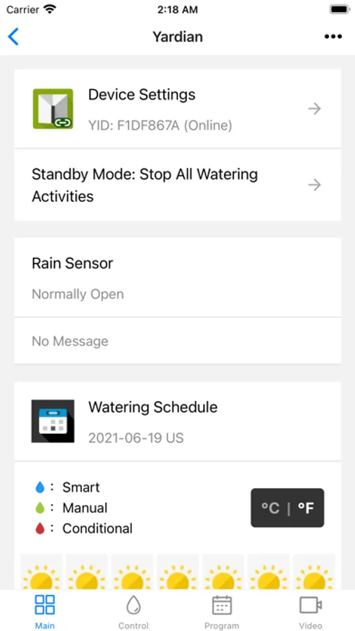 The Yardian’s “Smart Watering Program” carefully determines the optimal manner to water your lawn or garden with current, local weather data, your lawn or garden profiles and local water restrictions.The “Program” covers all watering zones by default. The Yardian can be easily set up and operating automatically without any manual programming.