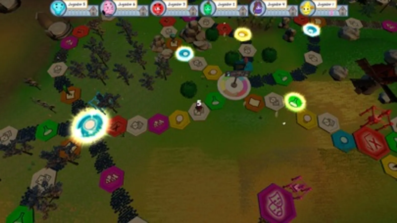 Los jugadores compiten para iluminar en su ficha los seis apoyos correspondientes a las seis materias del juego.