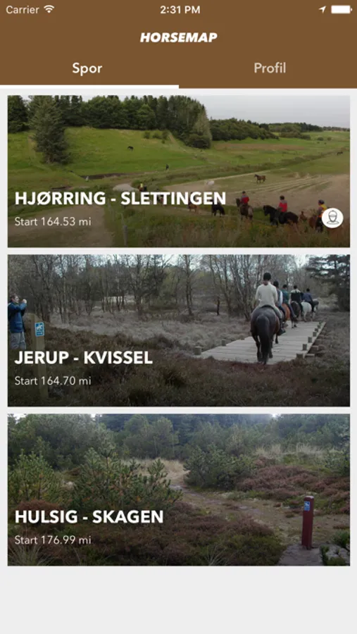 Horsemap viser hele tiden den rigtige vej på et tydeligt oversigtskort, og advarer hvis du er redet forkert.