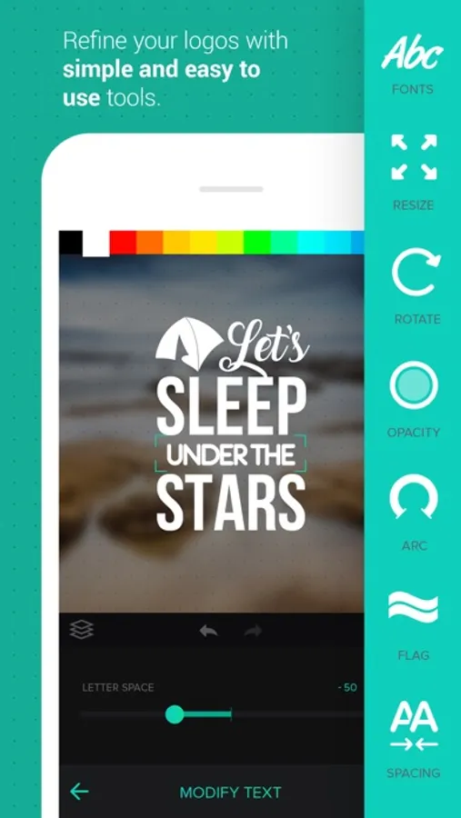- Advanced text editing tools that let's you create beautiful typography for the logo