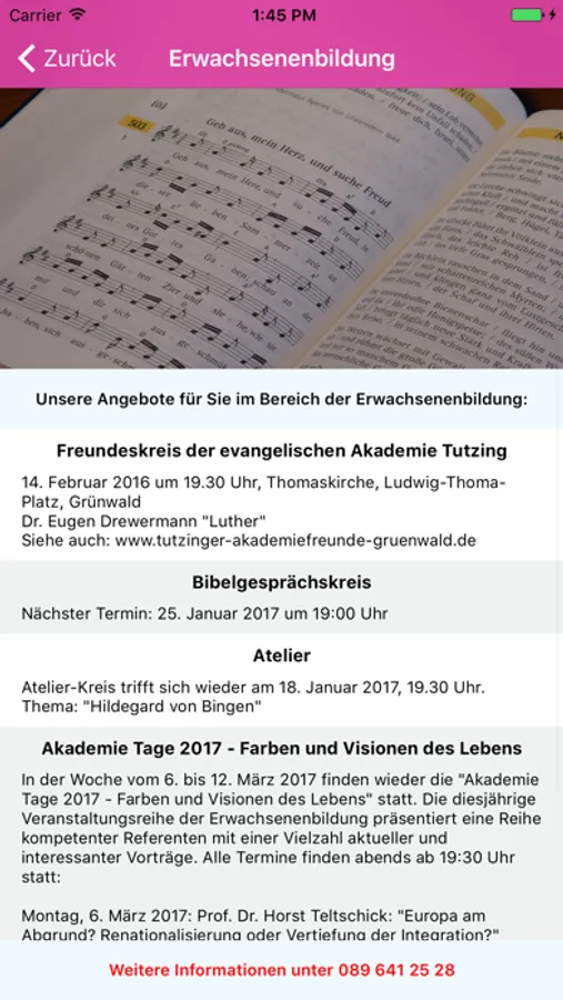 Termindaten über Gottesdienste und Veranstaltungen zu erhalten