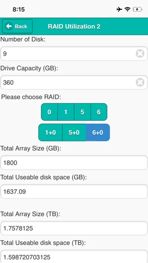 RAID Array calculator - RAID 0, 1, 2,3, 4, 5, 6, 1+0, 5+0, 6+0