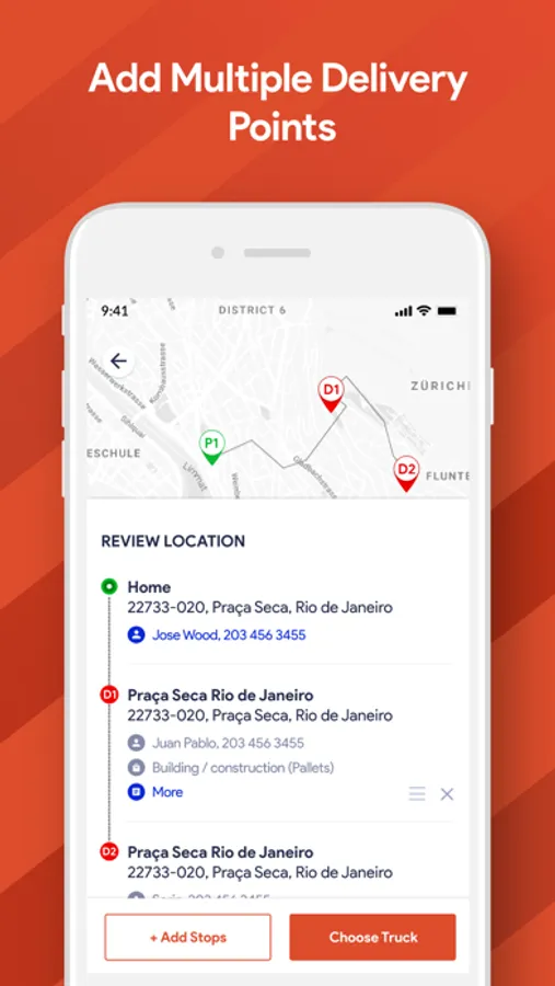 1. Plan your route - supports multiple delivery locations from the same pickup point.