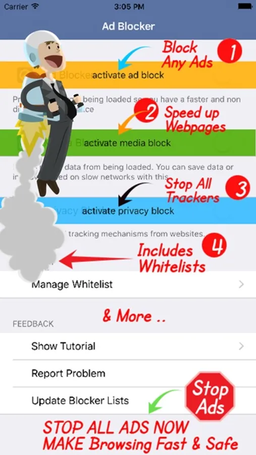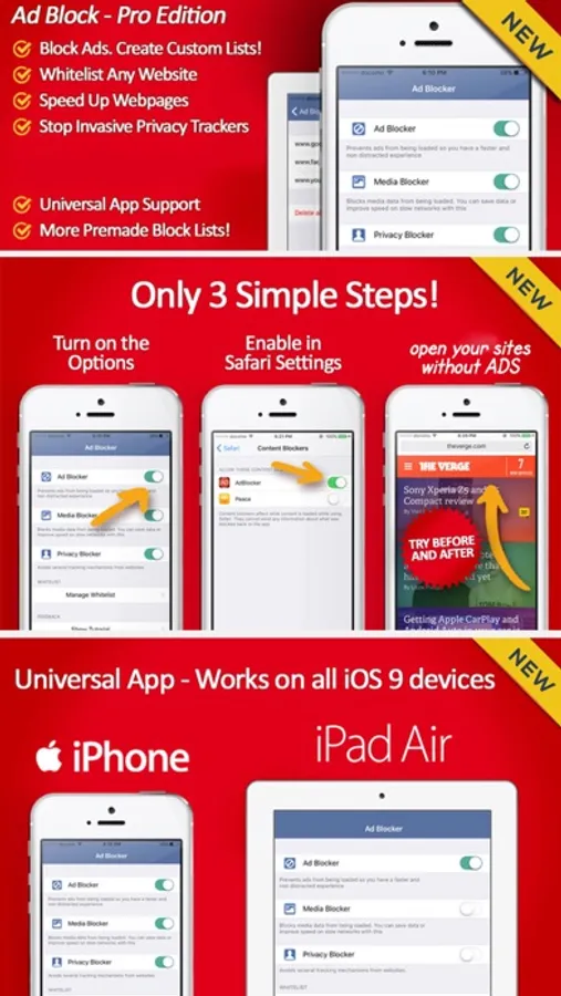 Ad Block Pro Edition - Three Content Blockers in One Application PLUS Whitelisting and Universal App Support