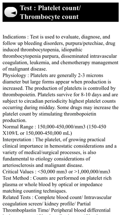 Each result contains important clinical information, critical lab values, differential diagnoses and etc. The Normal Lab Values are clearly arranged, alphabetically ordered and quickly located.