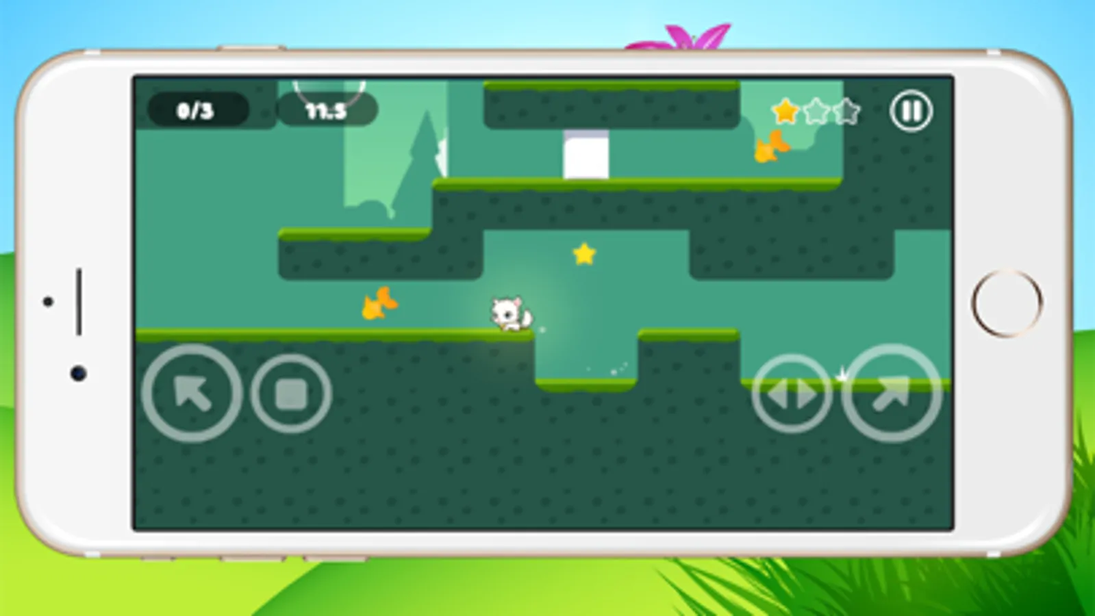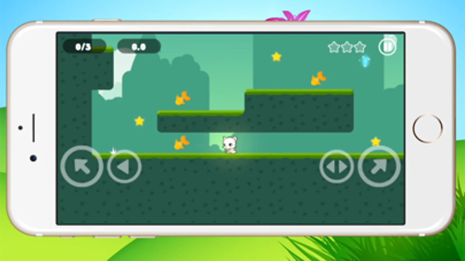 It is a great time for children and families, all played for fun with the Little kitten adventure - Greedy white cat running game. This can be played easily. The players need to force the little kitten Jump and run in the desired direction. Kitten's goal is to collect points from the star coins and fishes. And the game will have obstacle that keep polishing the run. In such a knife with a whip alternating up and down, the blades needle is placed and blocked. Kitten need to find key to open the blocked, and eat all fishes to open the door before you can get past the goal. When the mission was completed the little kitten will open the magic door to next level.