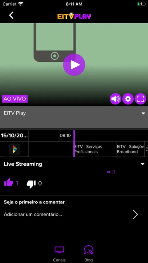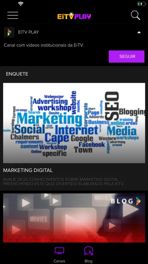 O EiTV Play é um aplicativo baseado na plataforma EiTV CLOUD com conteúdos exclusivos produzidos pela EiTV.