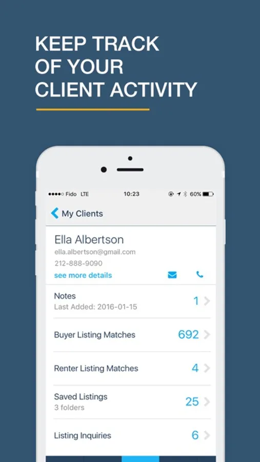 As an agent, find and send listings, create a custom website, invite clients, send email campaigns, get listing alerts, track buyer behavior, create reports, schedule appointments and more.