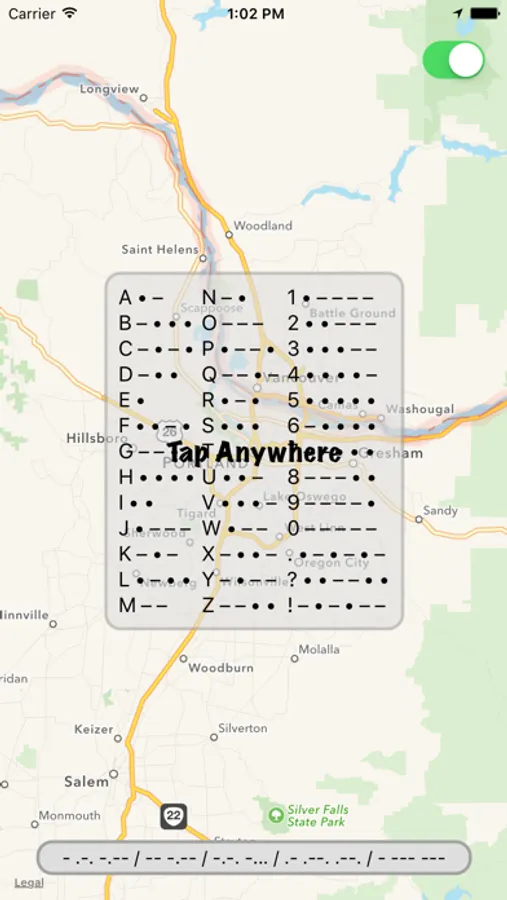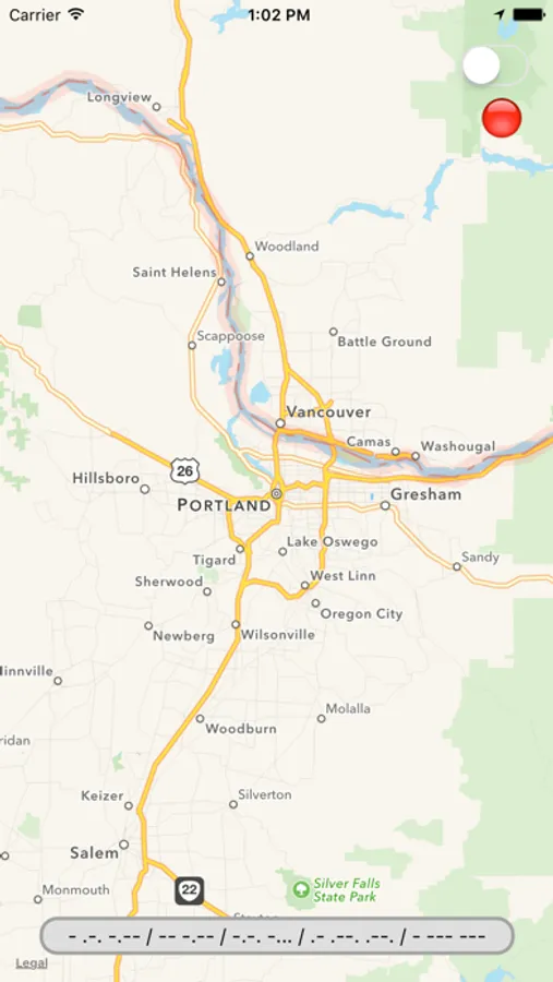 Morse is simple: the entire screen is your morse code key, so tap anywhere to start recording your message. You'll hear your tones as you tap (if you don't, turn up the volume!), and a red recording light will show in the upper right corner of the screen. When you're done with your message, just stop tapping, and the recording light will go off, and your broadcast will go out to all the other active users of the app!