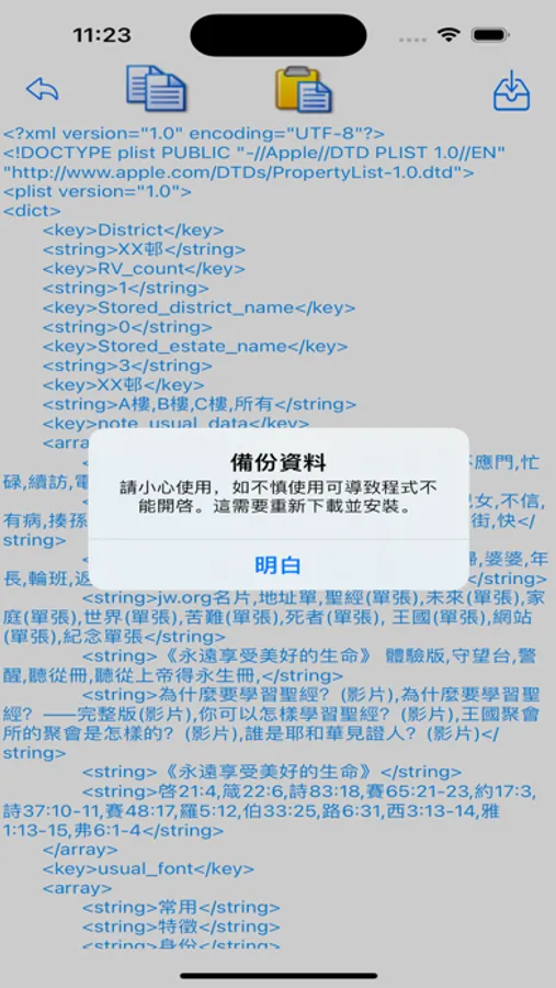 - 可以復原備份好的細項分類及快速輸入字庫。