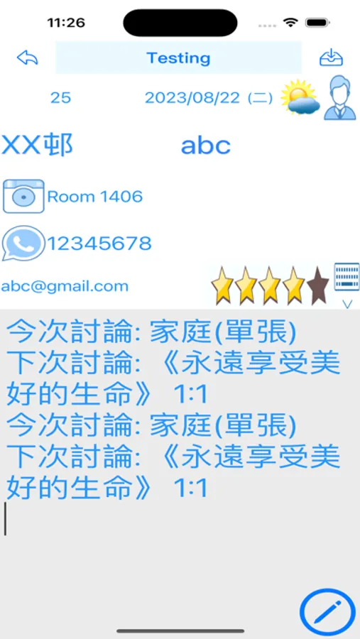 - 資料記錄後,會自動同步到同一賬户的IOS器材裏。也可以運用IOS裏預設的搜尋功能找到該續訪。