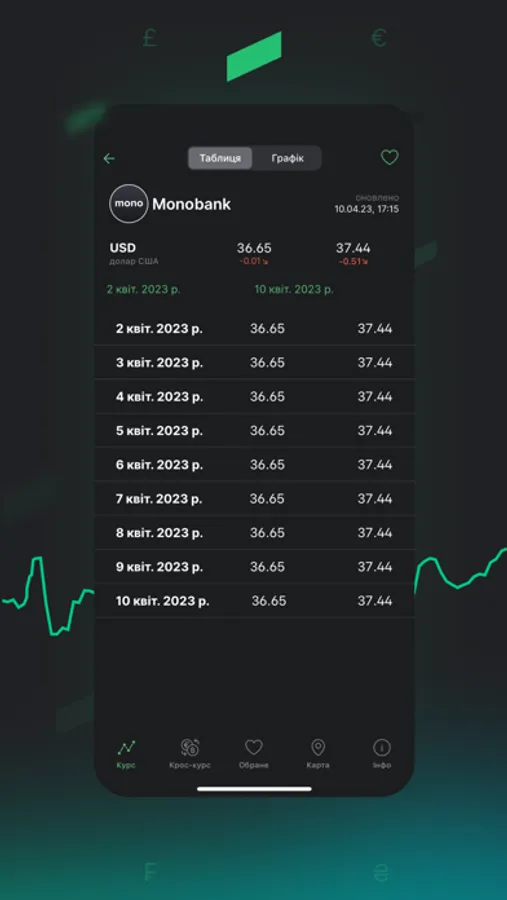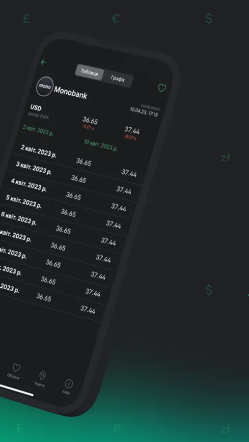 The latest commercial rates in the city: American dollar, Euro, Polish zloty and British pound prices in hryvnias. Find the best place to convert your cash and keep yourself posted about the rates changes.