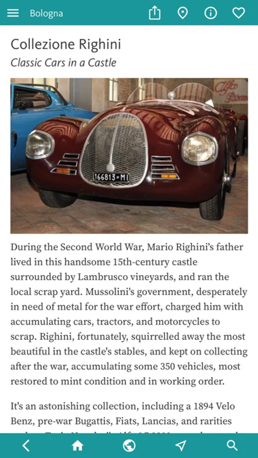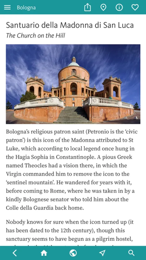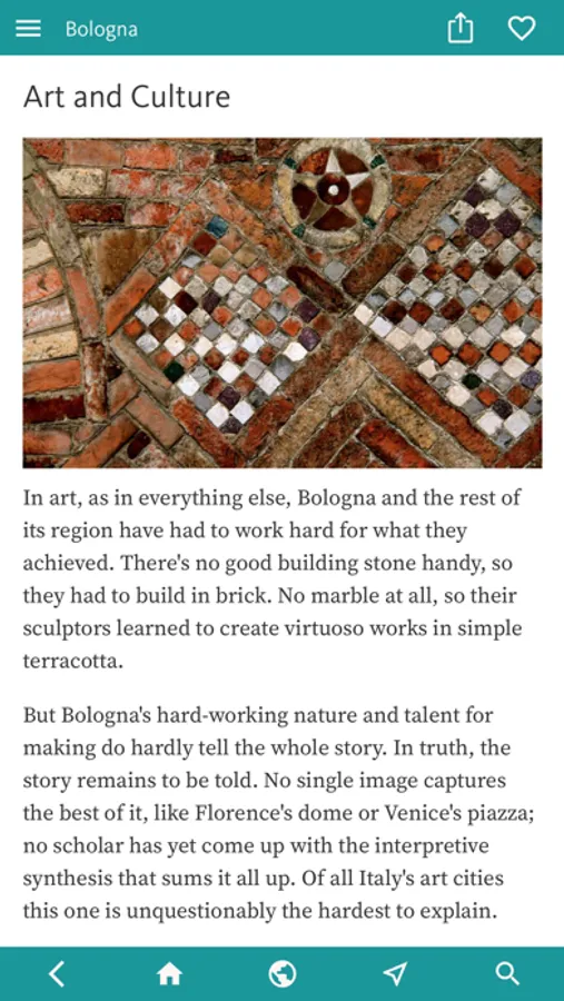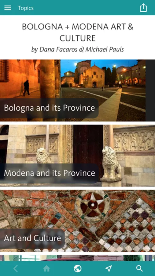 BOLOGNA AND MODENA is the first and only app to cover in depth two of Italy's greatest and least-spoiled art cities. It’s essential for exploring the richness of their histories and their vibrant life of today. We don’t do hotels and restaurants and shopping; instead, we offer a cultural companion that can enrich your visit like no other guide.