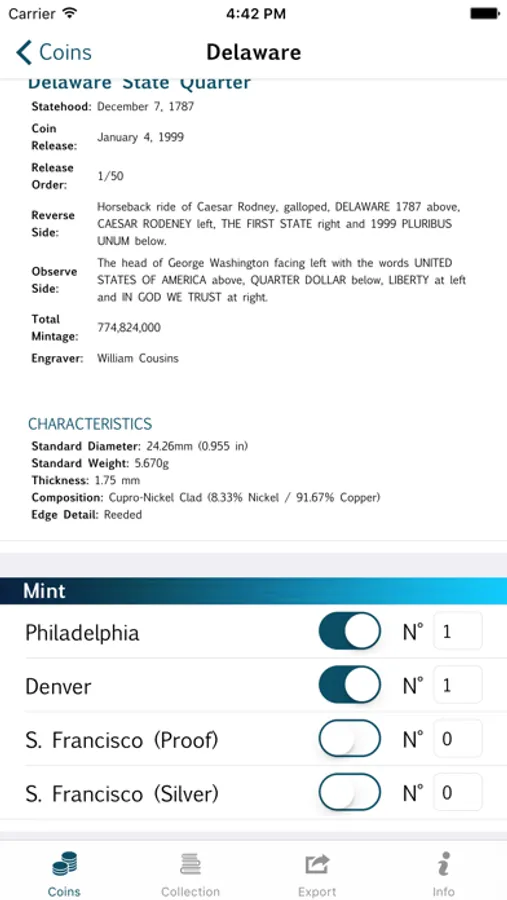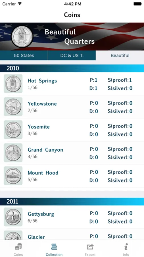• Keep track of quarters for all the three mints (P, D, S both proof and silver)