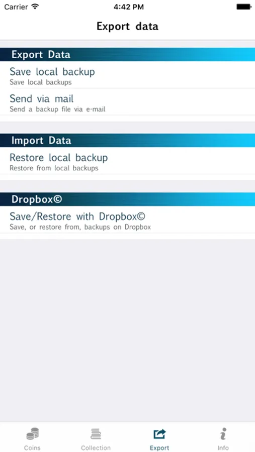 • Backup of the database
