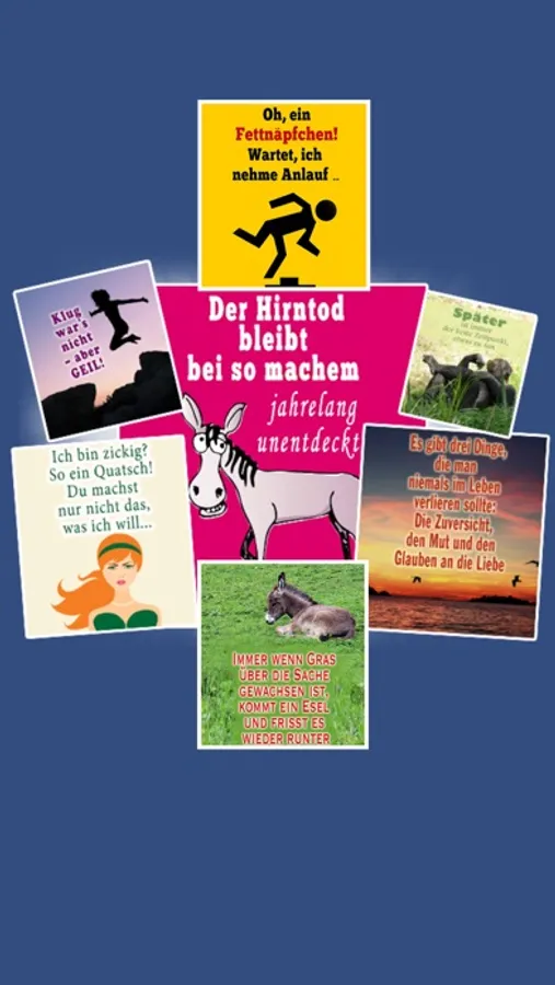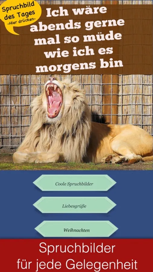 Und das Beste: Ständig gibt's die aktuellsten Spruchbilder dazu – passend zum Anlass: Ist zum Beispiel Ostern, bekommst du Ostersprüche. Ist Weihnachten, gibt's Weihnachtssprüche auf dein Handy.