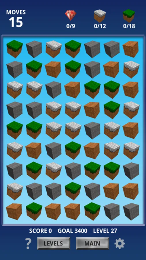 Block Match 3 is a fun blocky style match three puzzle game. Touch an item and swipe up, down, left or right to move it. Match three of the same type to get points and complete goals. If you touch the TNT it will explode so if you want to match three of them you will need to touch and swipe the adjacent item you want to swap it with. If you fail to reach the level goal you can add moves to keep going. Once you complete a level you can replay it for high score. Completing levels will give you coins to buy moves. You can replay levels to try and beat your old scores.