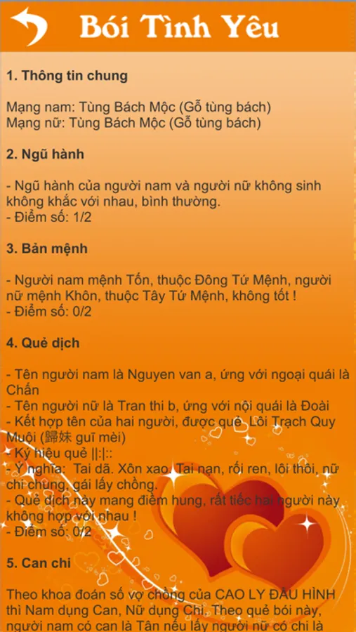 Thông tin đưa ra dựa trên nhiều tiêu chí: Ngũ hành, Mệnh, Can Chi, Tên, ...