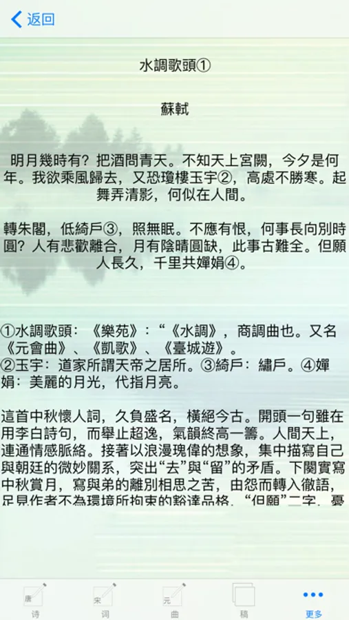 一個集詩詞賞析、學習和創作於一體的應用。開發者努力镕詩詞曲賦方方面面林林總總的知識和功能於一爐。