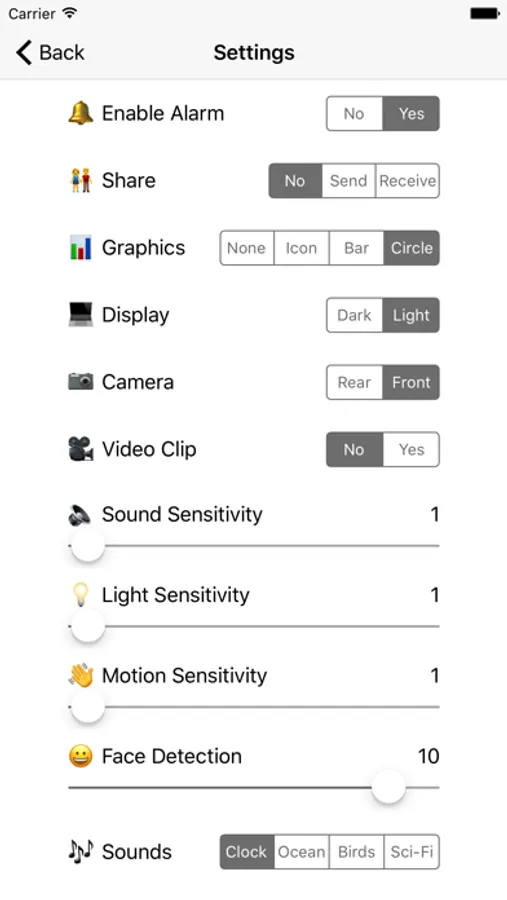Alert triggers an alarm based on detecting people's faces or changes in sound, light or motion. When a trigger is detected you have the option to cancel, postpone or just let it sound an alarm. You control sensitivity to detect the slightest sound, change in lighting, vibration or even the number of people detected. At night time use Alert's dark screen and trigger the torch. Share alarms with friends using Alert to remotely monitor on an iPhone, iPad or Apple TV.