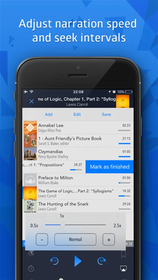 ・ play audiobooks and podcasts files in mp3, m4b and wav formats