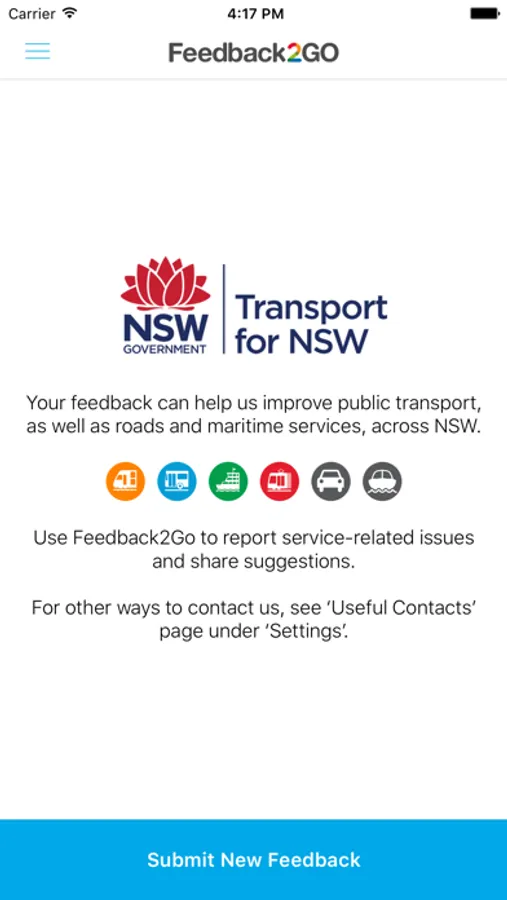 • A mobile channel that makes it easier for you to provide feedback on major transport modes: Metro, Train, Bus, Ferry, Light Rail, Roads and Maritime.